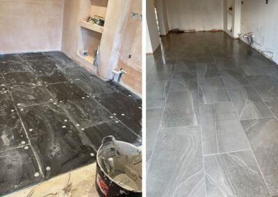 Our floor tiling services cover everything from bathroom and kitchen floors to hallways and living spaces. We use proven preparation and levelling techniques to achieve a long-lasting, professional finish. With a wide range of tile options available — from classic ceramics to large-format porcelain — we can help you choose the perfect style to complement your space. Every floor is installed with precision, ensuring durability and a premium appearance that stands the test of time.