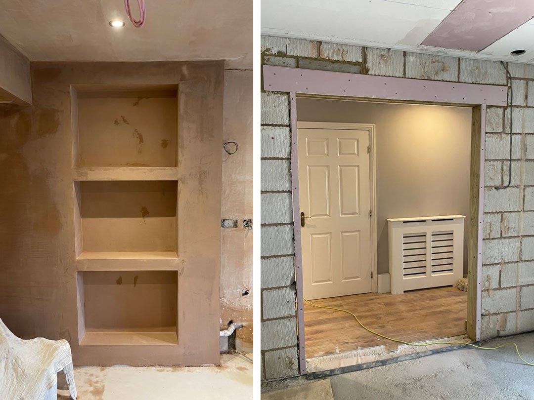 Bespoke plastered wall niches, designed to add architectural interest and discreet storage/display areas
